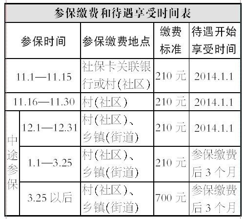 1.参保人员超过缴费期后要求参保,2014年3月25日前参保的,其费用按全年个人缴费标准210元缴纳;2014年3月26日起参保的,其费用按筹资标准700元(含财政补贴490元)缴纳。医疗保险待遇从参保缴费当月起的三个月后方可享受。